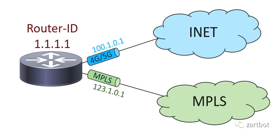 如上图所示,对于用户而言,他们往往最关心的本质是:如何唯一的标记这个路由器后面所接的网络?其实是在完成路由表中的下一跳信息。同样借助“软件定义”中的Overlay的概念将底层的广域网链路拓扑和连接介质类型的复杂性和上层应用之间解耦合。对于Overlay层面,我们可以借助以往的Router-ID的概念对路由器进行编号,然后用链路颜色(Color)标记具体是哪种类型的链路,例如4G/5G或者MPLS,最后再选择何种封装形式到达,IPSec?或者是MPLS Label或者是GRE隧道或者是VXLAN?这就是思科解决方案中定义的TLOC(Transport Locator),即将客户最关心的三个信息组合在一起构成TLOC:3.资源可以通过哪种封装方式到达,是否加密(Encapsulation)