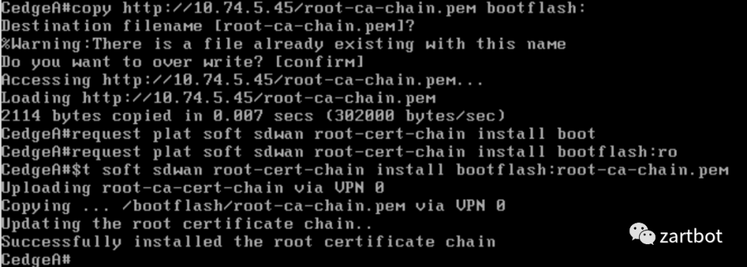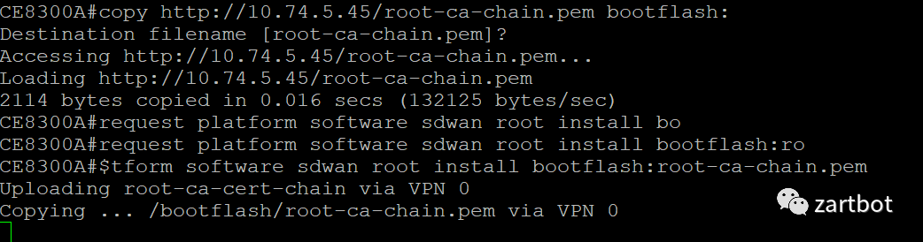 request platform software sdwan root-cert-chain install bootflash:root-ca-chain.pem