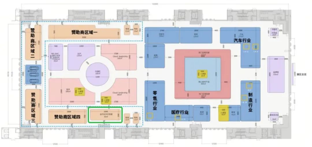 展区指引:绿框区域为合作伙伴开放麦展区