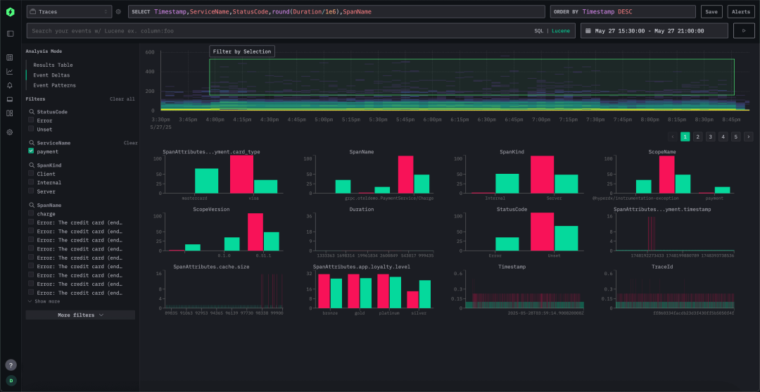- 标准化数据采集:从项目初期,HyperDX 就全面支持 OpenTelemetry,与我们在 ClickHouse Exporter 上的长期投入高度一致。