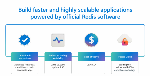 与 Azure Cache for Redis 相比,全新发布的 Azure Managed Redis 性能提升最高可达 15 倍,同时价格更具优势,是截止目前 Azure 上最具性价比的 Redis 托管服务。借助多区域活动异地复制,可为全球用户提供亚毫秒级延迟访问体验,同时还可保持 99.999% 的 SLA。