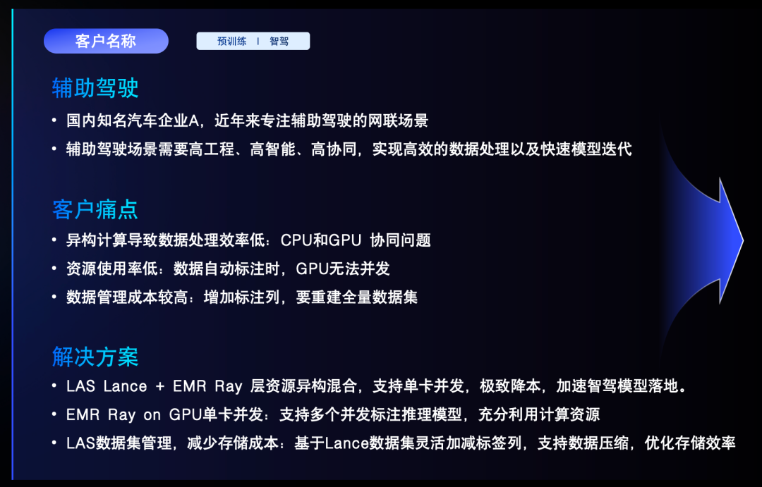 最后我们来看两个客户案例,第一个案例是一个国内领先车企,客户希望通过端到端大模型优化和升级辅助驾驶能力。