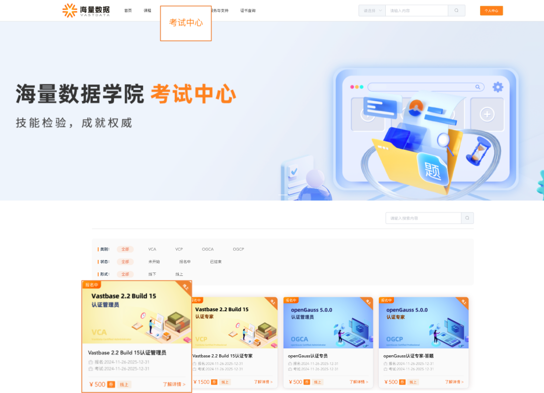 进入《Vastbase 2.2 Build 15认证管理员》详情页