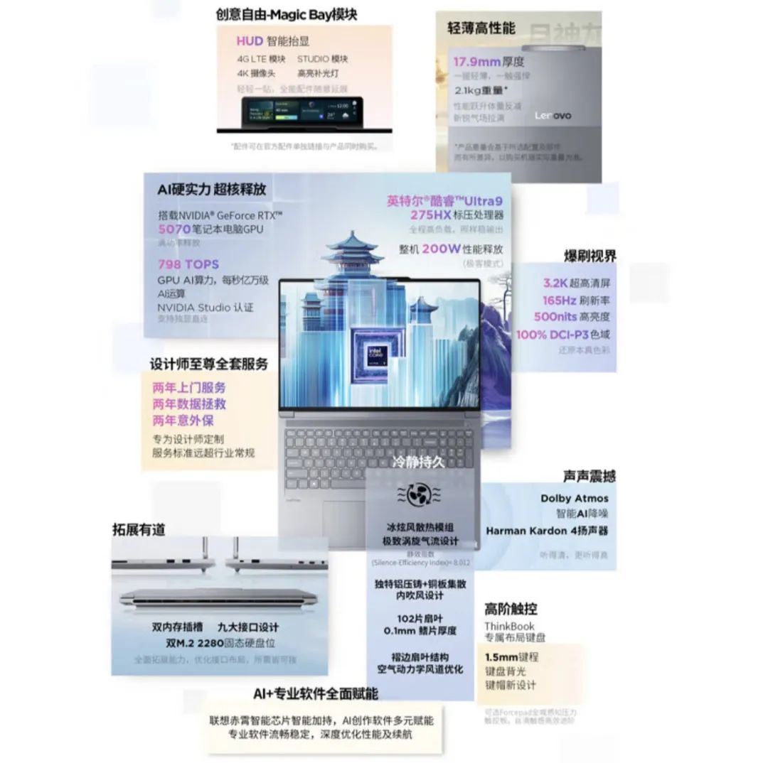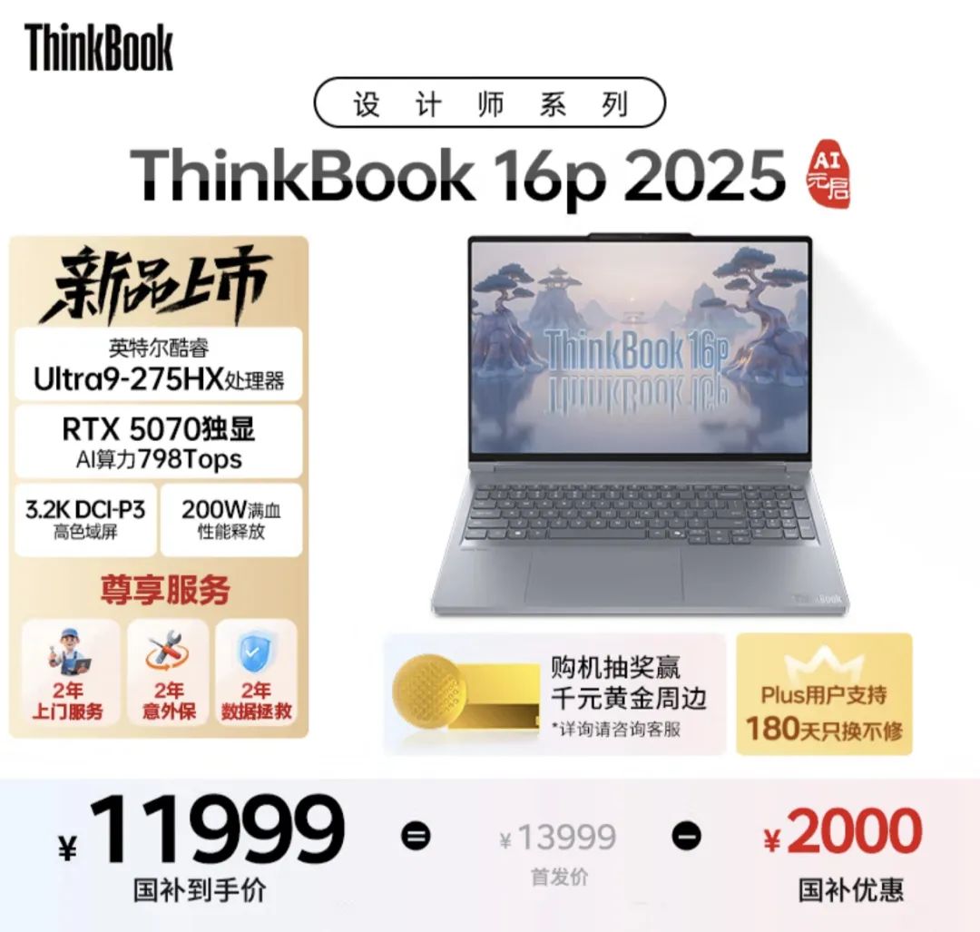 中端价位且能兼顾AI学习、日常办公的笔记本,朋友推荐了联想设计师系列。而且我职业生涯中也一直使用ThinkPad系列笔记本,所以最终出于个人偏好选择了ThinkBook 16P。