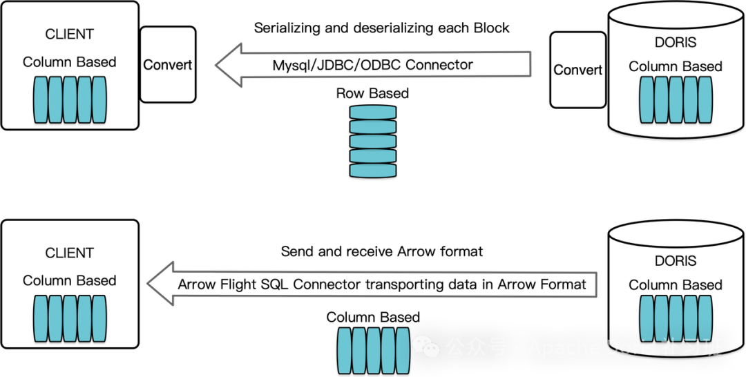 在 Doris 中,为解决数据传输的种种难点,社区在这方面提供了 Arrow Flight 数据传输链路来处理该问题。