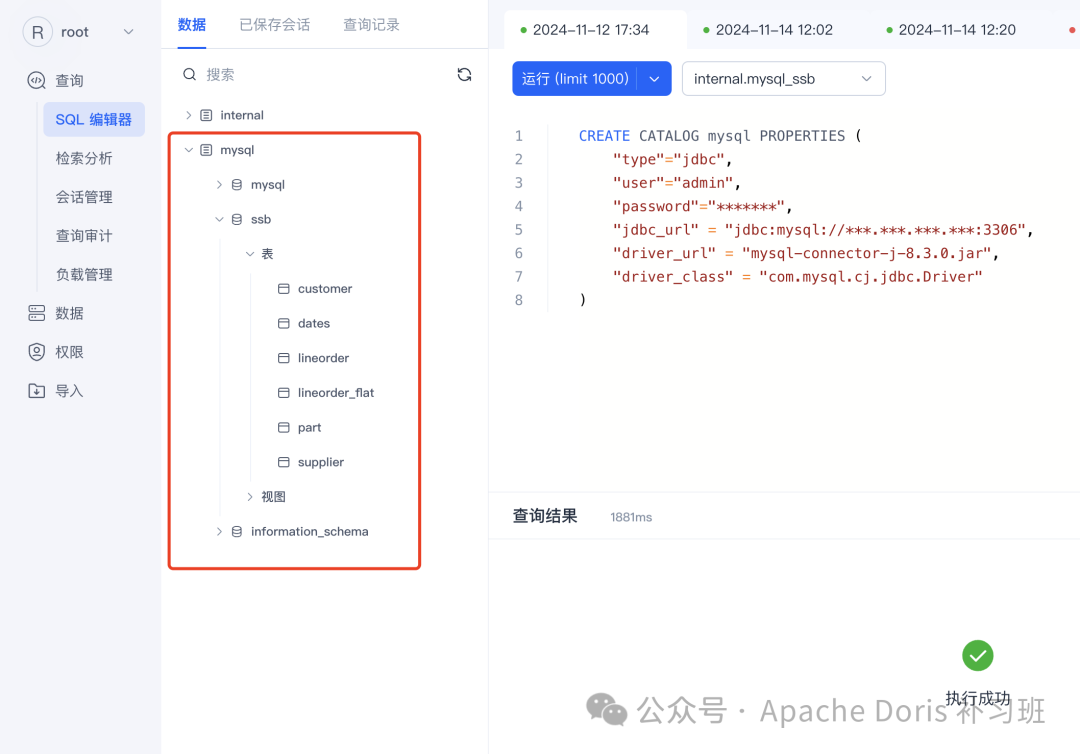 使用 Doris 的 JDBC-Catalog 功能,可简单快捷的同步主流 OLTP 库的数据至 Doris 指定表中,我们接着使用上述环境完成构建。