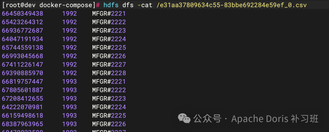 将大批量数据导出至远端存储系统中,如HDFS、支持S3协议的对象存储、本地文件系统等,这类导出会先将存储在 Doris 的压缩数据进行解压缩和列转行,然后再根据导出时候的参数定义转为指定的数据类型格式。