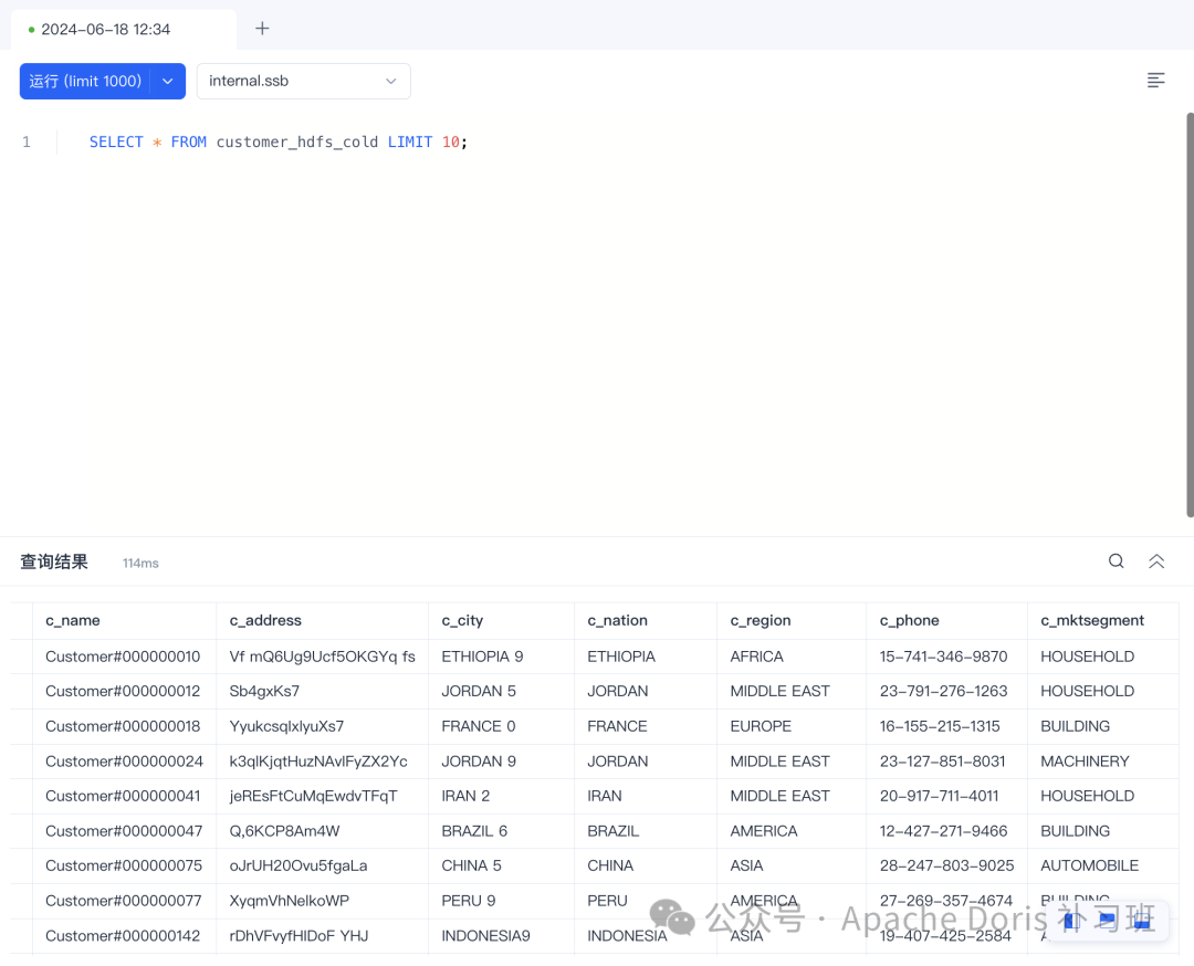 SELECT * FROM customer_hdfs_cold LIMIT 10;