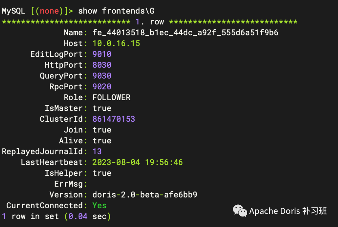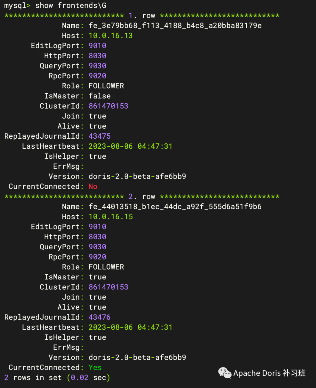 mysql -uroot -P9030 -h10.0.16.136. 查看 FE 状态