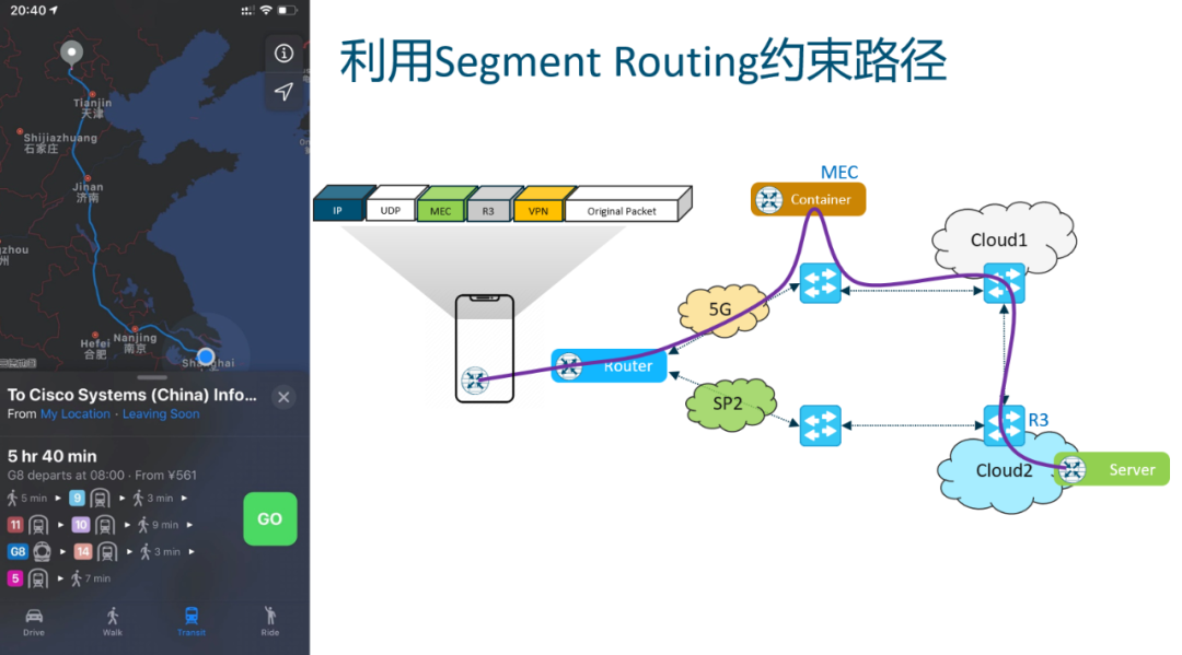 例如某个应用需要绕行MEC后再到云端,可以将其转发路径加入MEC路由器标签和云端路由器标签,然后中继节点根据标签转发即可。当然与此同时您会想到, 能否在报文中也定义一下MEC上该调用哪个函数处理,这样不就把Serverless也串入整个架构了么?当然可以咯。