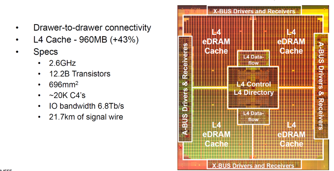 [2]IBM Doubles Its 14nm eDRAM Density, Adds Hundreds of Megabytes of Cache: https://fuse.wikichip.org/news/3383/ibm-doubles-its-14nm-edram-density-adds-hundreds-of-megabytes-of-cache/