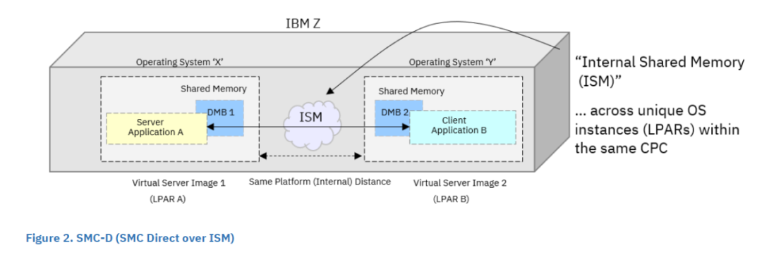 然后还支持SMC-D 即Internal Shared Memory模式,有点类似于SRIOV一类的处理方式,但是这个模式很好的诠释了通信的本质就是共享内存,而共享内存最好的方式就是通信: