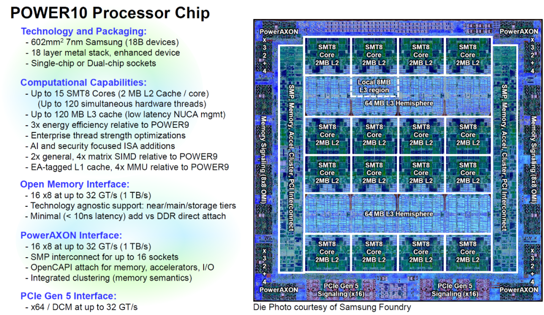 在去年的HotChip上IBM发布了一些关于下一代Power10处理器的消息: