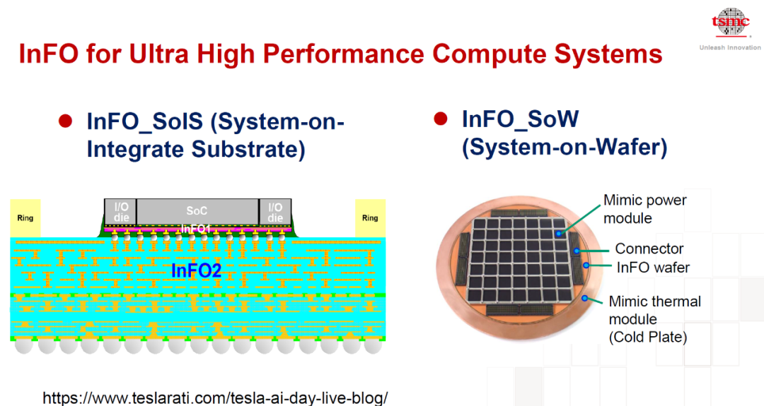 Dojo则是采用台积电的封装实现的System-on-Wafer