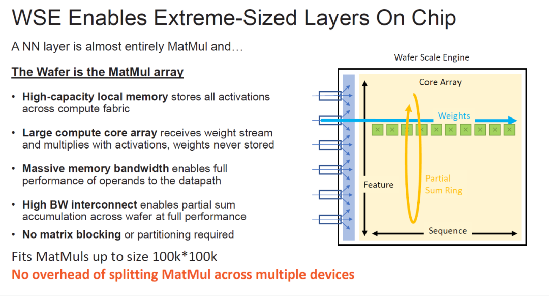 而Wafer-Scale直接在光刻的时候把片间网络构造好则成了跳出传统的网络思维的通信方式,而通信的本质无非是共享内存,直接简单粗暴的解决了问题: