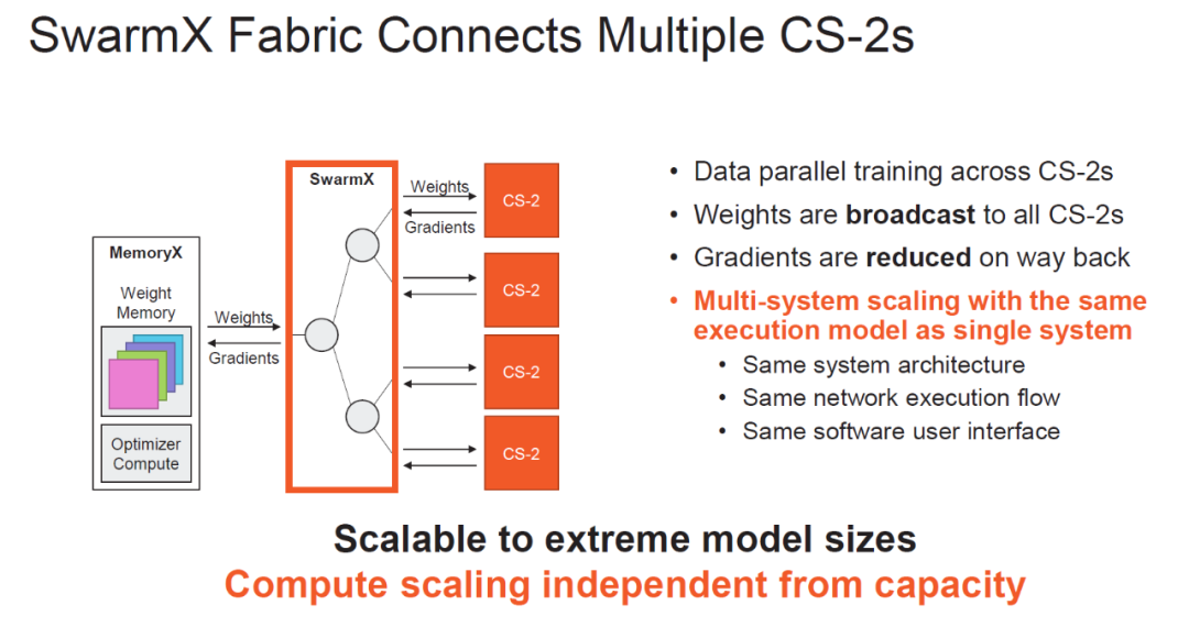 当然如果单机解决不了,那么多机也可以解决问题,它采用每个CS-2机箱12个100GE口连接到MemoryX交换机.