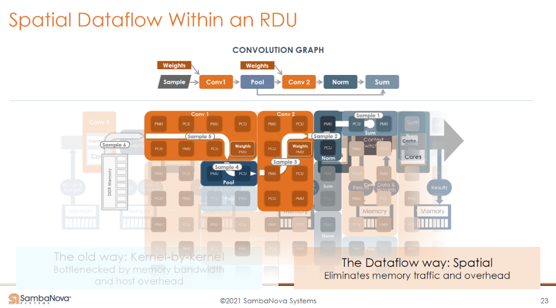 HotChip33第二天主要是GPU和AI芯片, Cerebras的第二代Wafer-Scale芯片和整个AI集群很有趣,SambaNova的Software-Driven架构也很好玩,然后Intel的GPU也是值得看看的. 相比这些大佬,国内的Enflame就有点,片间连接还在带外走线....总体来说这届Hotchips在片上网络和封装技术给世界打开了一大扇窗,.其中的Cerebras MemoryX,我们已经有一个容量更大的样机了,嘻嘻~