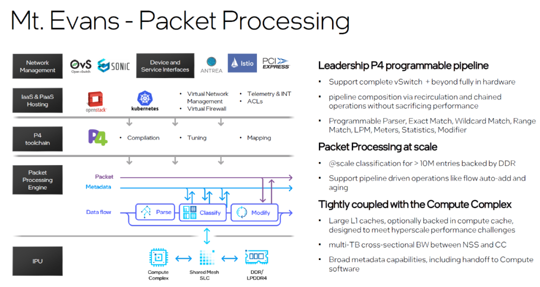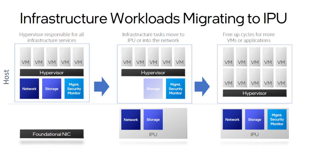 Intel的IPU定义从这个图上看还是中规中矩的,毕竟一个以CPU为主业的公司,肯定不会去考虑大量的Offloa的,所以IPU在樱桃眼里就是一个给CPU打杂的基建民工