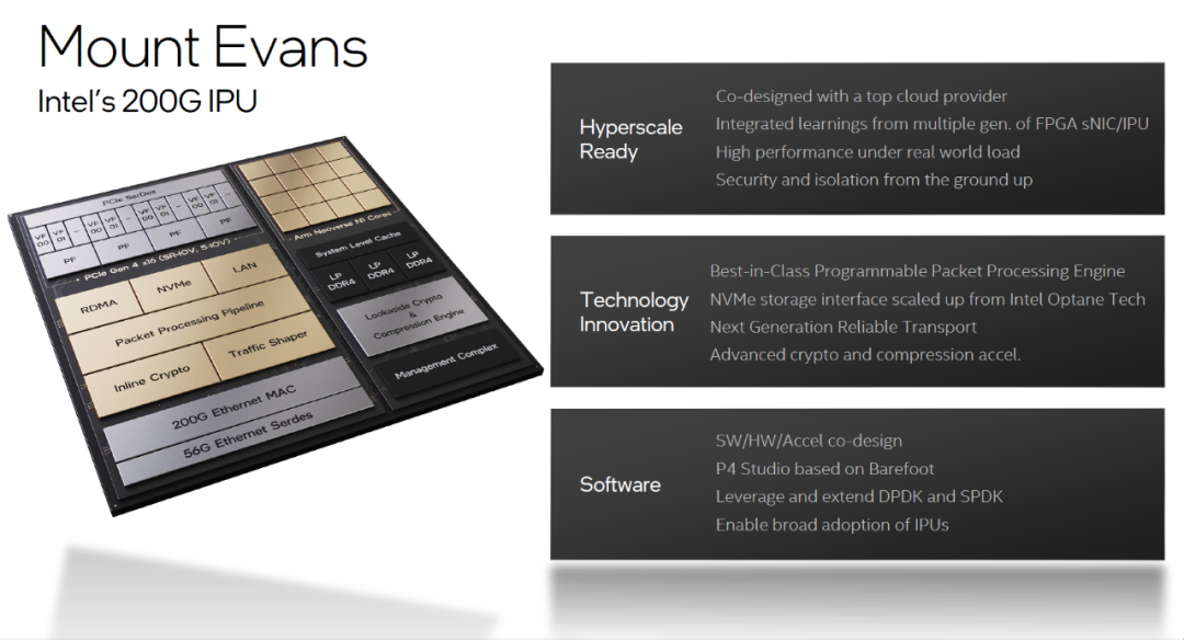 其实一开始单独看这块IPU,200Gbps说实话保守了一点,因为你们家下一代Xeon跑400Gbps的业务基本上没啥问题了..