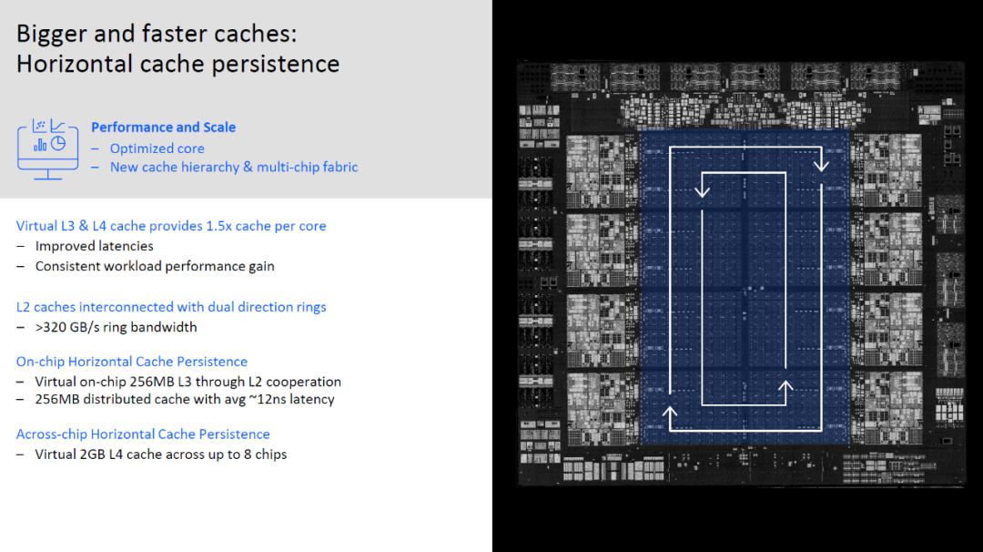 5+GHz 大量的片上缓存,片内总线还是一个环