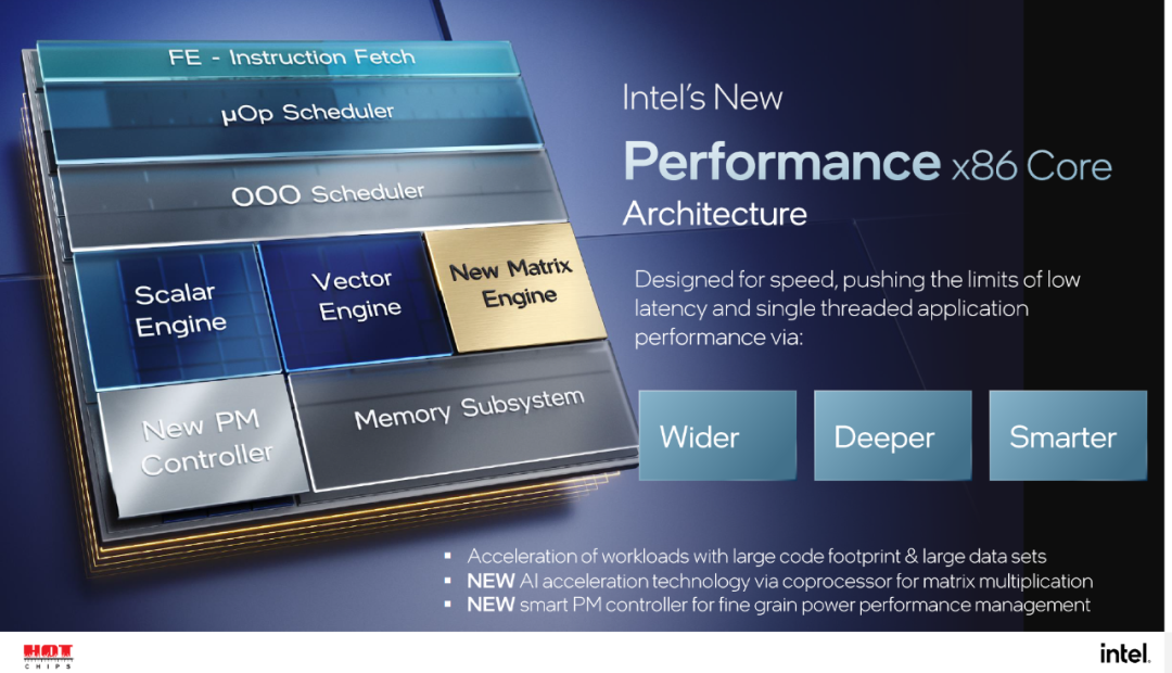 主要侧重于并行性、降低延迟、提升通用性能,同时还加入了新的AMX来执行矩阵乘法运算: