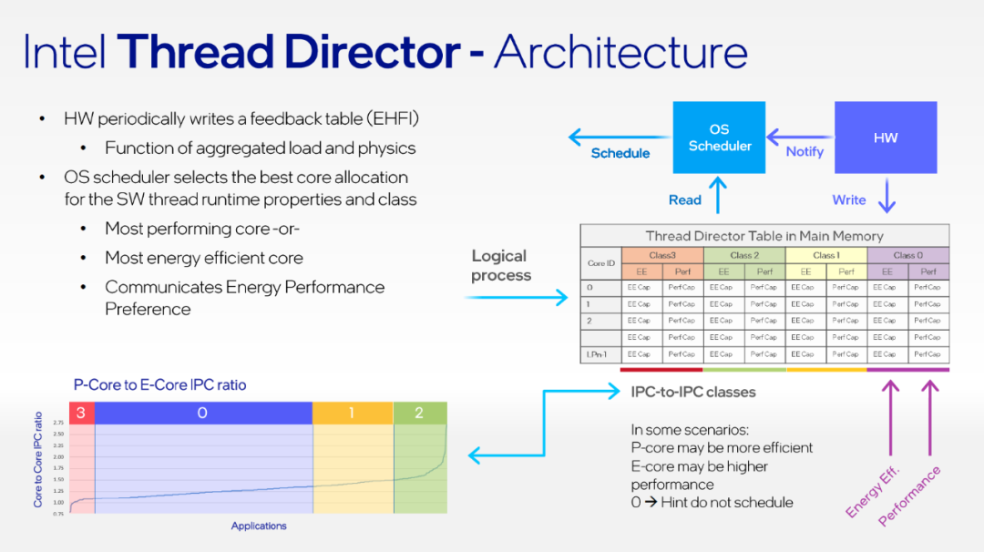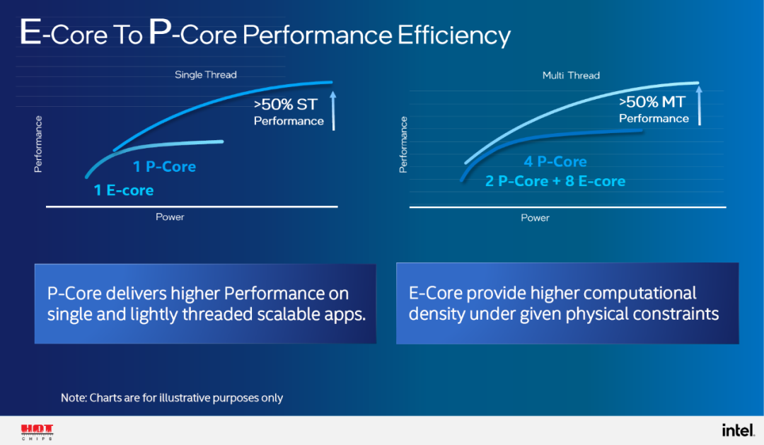 所以P-Core和E-Core针对单线程和多线程业务模式时,通过灵活的搭配可以获得更高的能效比: