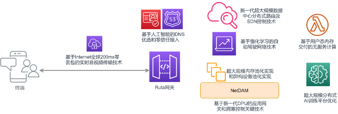 对于终端接入云,我们实现了基于Internet 200ms全球零丢包可达的实时音视频传输RTN的关键技术创新.在接入访问控制和流量调度中,我们实现了基于人工智能的ZaDNS优选路径和零信任接入访问能力(已开源).在数据中心我们实现了新一代大规模数据中分布式路由协议及SDN控制技术的研发,并和广域网RTN及用户态传输融合实现了端到端的可控转发。同时针对数据中心拥塞实现了基于强化学习的自动驾驶网络技术。