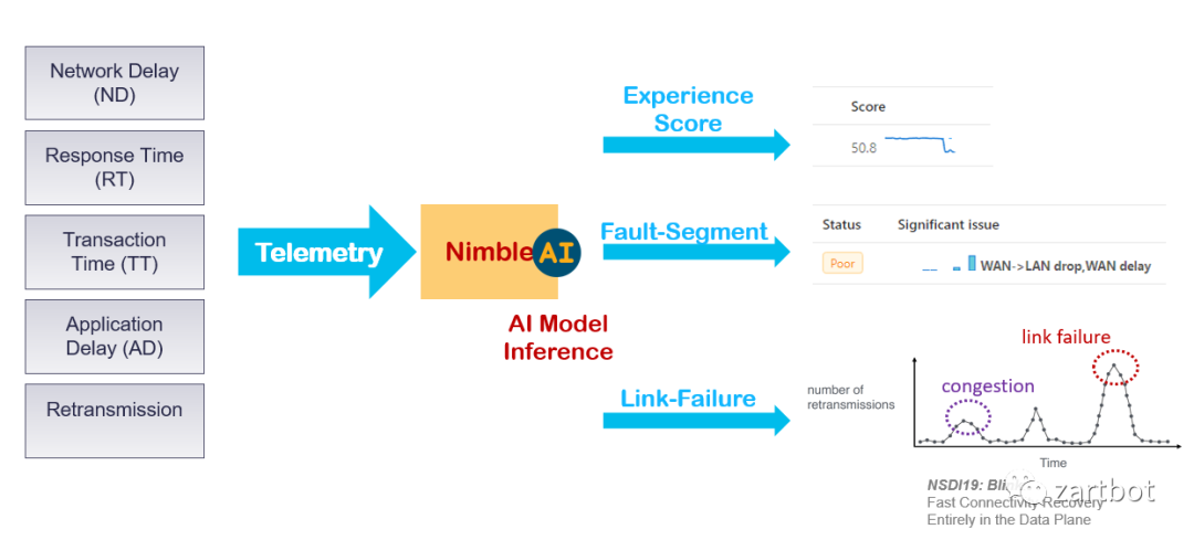 在大规模分布式系统中应用由于传输带来的性能下降是第一个需要挖的地方,而一切决策需要从量化数据来。因此2018年我们通过一系列测量手段和AI/ML推理实现了应用性能评分及故障点的自动归因。