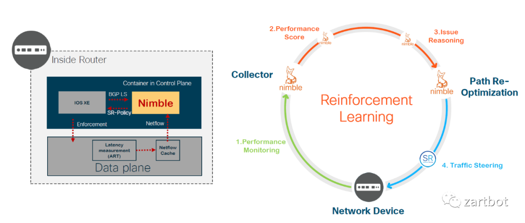 有了应用性能评分以后,我们就可以根据评分模型进行强化学习了,具体实现也不多谈了,有保密技术。通过网络设备自带的AI引擎实现了任意拓扑零丢包自愈技术,即自动驾驶网络技术