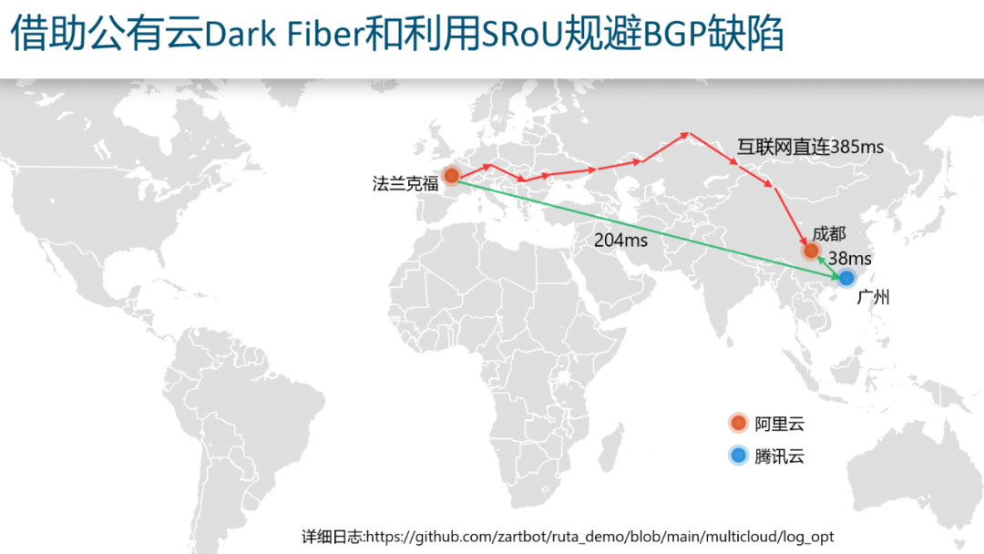 其背后的逻辑是利用公有云的全球覆盖资源,同时借助公有云内部的一些Dark Fiber或者跨数据中心的广域网带宽资源自动发现优质路径,