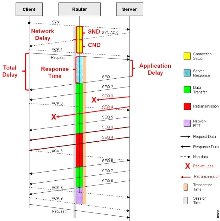其实很多年前,思科就做过网络延迟和主机延迟解耦的工作即Cisco AVC中的ART(Application Response Time),通过网络设备记录时间戳来获得最终服务器的响应延迟: