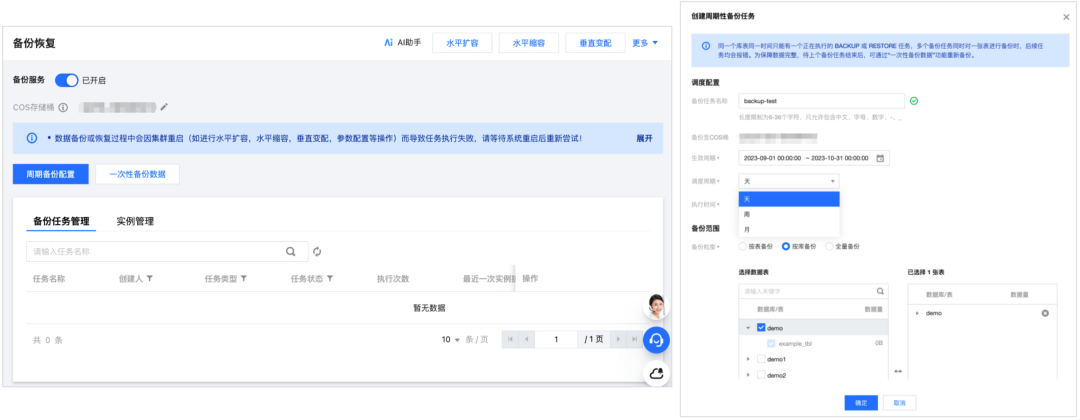 使用TCHouse-D的备份恢复功能周期性的将数据导入到对象存储COS中进行备份,避免数据误删除或丢失的情况发生。比如当因某些原因导致Flink同步任务失败、无法从 Checkpoint进行启动时,可读取最新的数据进行同步,历史缺失数据通过外部表进行修复,使得同步任务能够快速恢复。