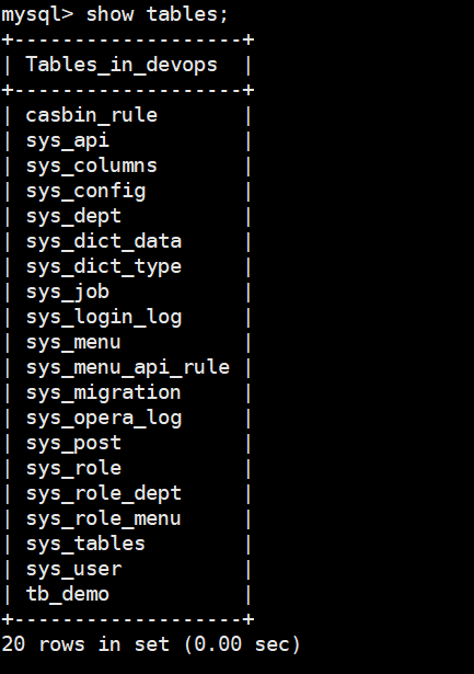use devopsshow tables;