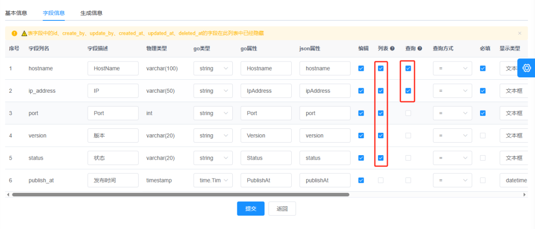 这张表,也就是你要增加功能对应的表,比如要增加一个存放MySQL元数据的功能,就设计一张MySQL表。这些字段可以自定义。