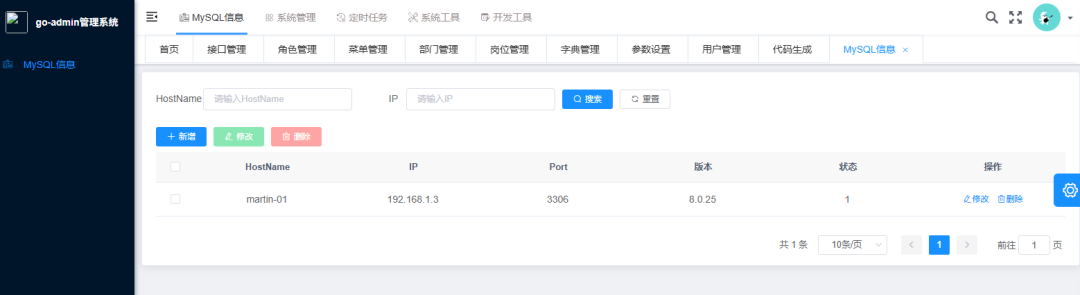 而go-admin就恰到好处。特别适合DBA,因为对于只需要CRUD功能的页面,我们只要设计出一张MySQL表,之后页面上点点点就行,不需要写任何代码。