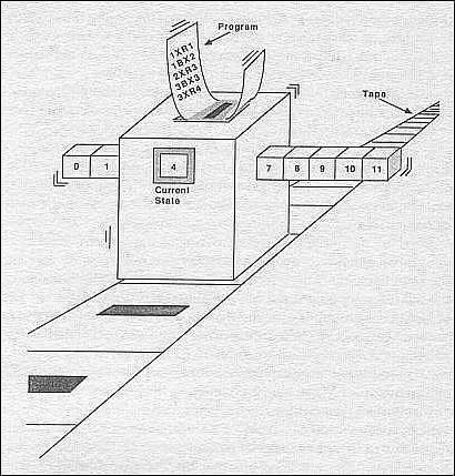 图灵机的基本思想是利用机器来模拟人使用纸笔进行数学运算的过程,通过一个机械操作的读写头去模拟笔和眼睛,可以在纸带上写上或者擦除某个符号,也可以像眼一样移动到纸的另一个位置。