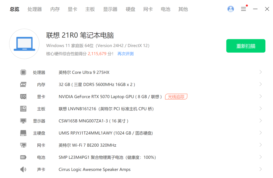 ThinkBook 16P笔记本入手,首先要给电脑做个“体检”。
