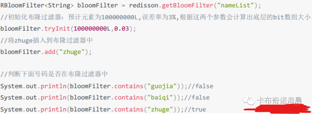 伪代码示例:主要就是创建布隆过滤器,设置大小,不断添加数据,后续进行判断