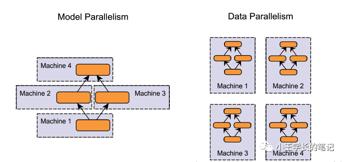 l数据并行:不同的GPU输入不同的数据,运行相同的完整的模型。