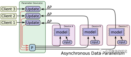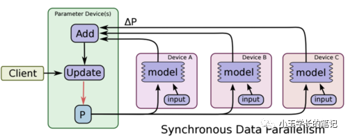 对于数据并行来说,由于每个GPU负责一部分数据,那就涉及到如果更新参数的问题,分为同步更新和异步更新两种方式。