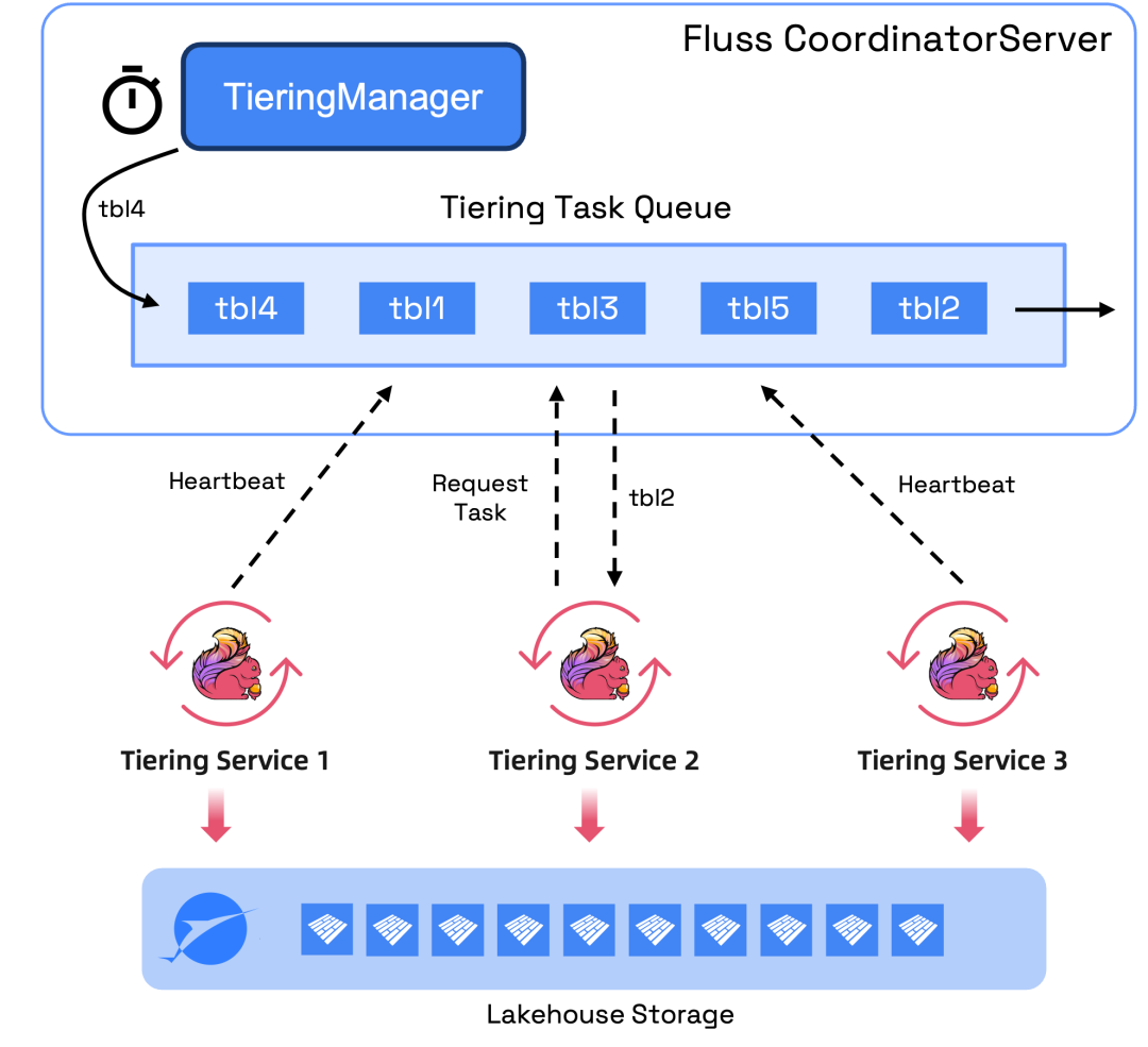 在 Fluss 0.5 版本中,我们首次引入了湖流一体的能力,实现了与 Lakehouse 系统的深度集成,并通过 Union Read 的功能显著降低了流存储成本,同时提升了 Lakehouse 中数据的时效性。然而,在早期实现中,该架构存在一定的局限性,影响了其在生产环境中的可扩展性和运维友好性。在 0.7 版本中,我们对湖流一体的整体架构进行了重构和升级,解决了这些问题。