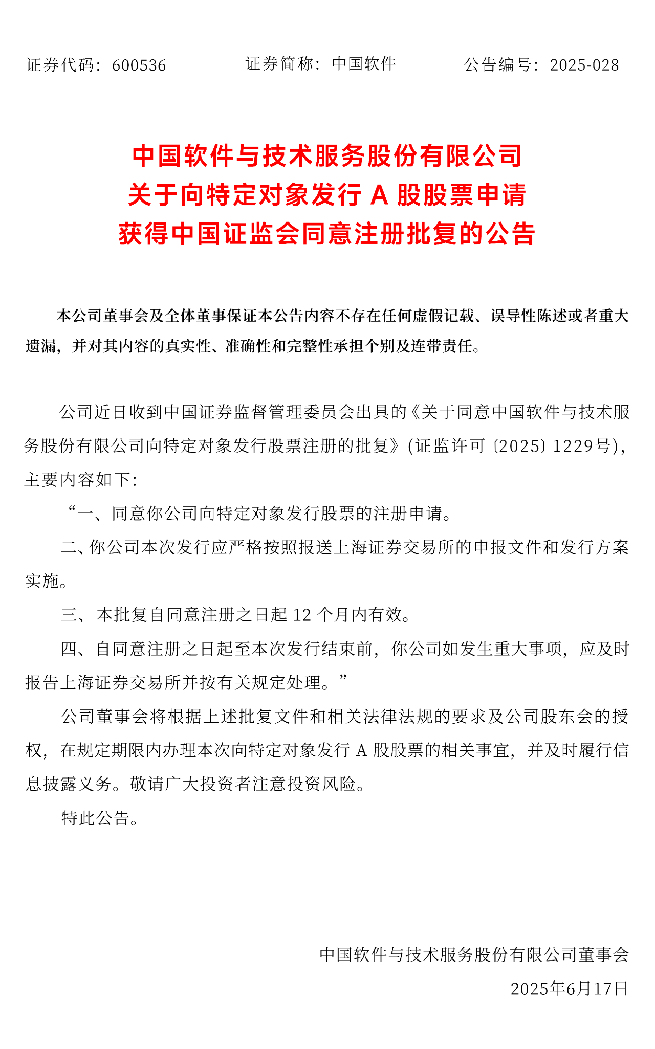 点击“阅读原文”,了解《中国软件与技术服务股份有限公司向特定对象发行股票证券募集说明书(注册稿)》详情。