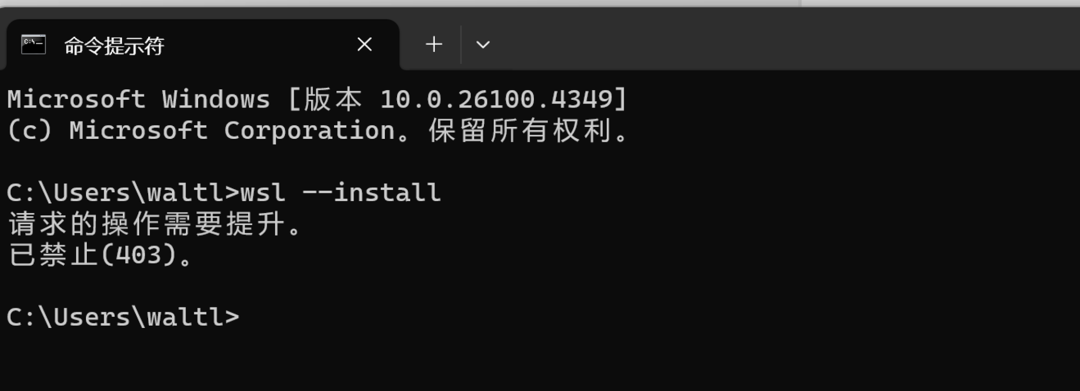 C:\Users\waltl>wsl --install请求的操作需要提升。已禁止(403)。