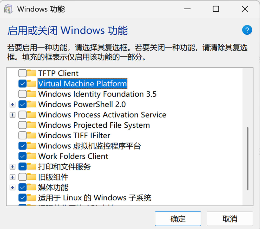 1. 打开 “启用或关闭 Windows 功能”:按 Win + R,输入 optionalfeatures.exe,点击 确定。2. 勾选相关选项:确保勾选 “适用于 Linux 的 Windows 子系统” 和 “虚拟机平台(Virtual Machine Platform)”。