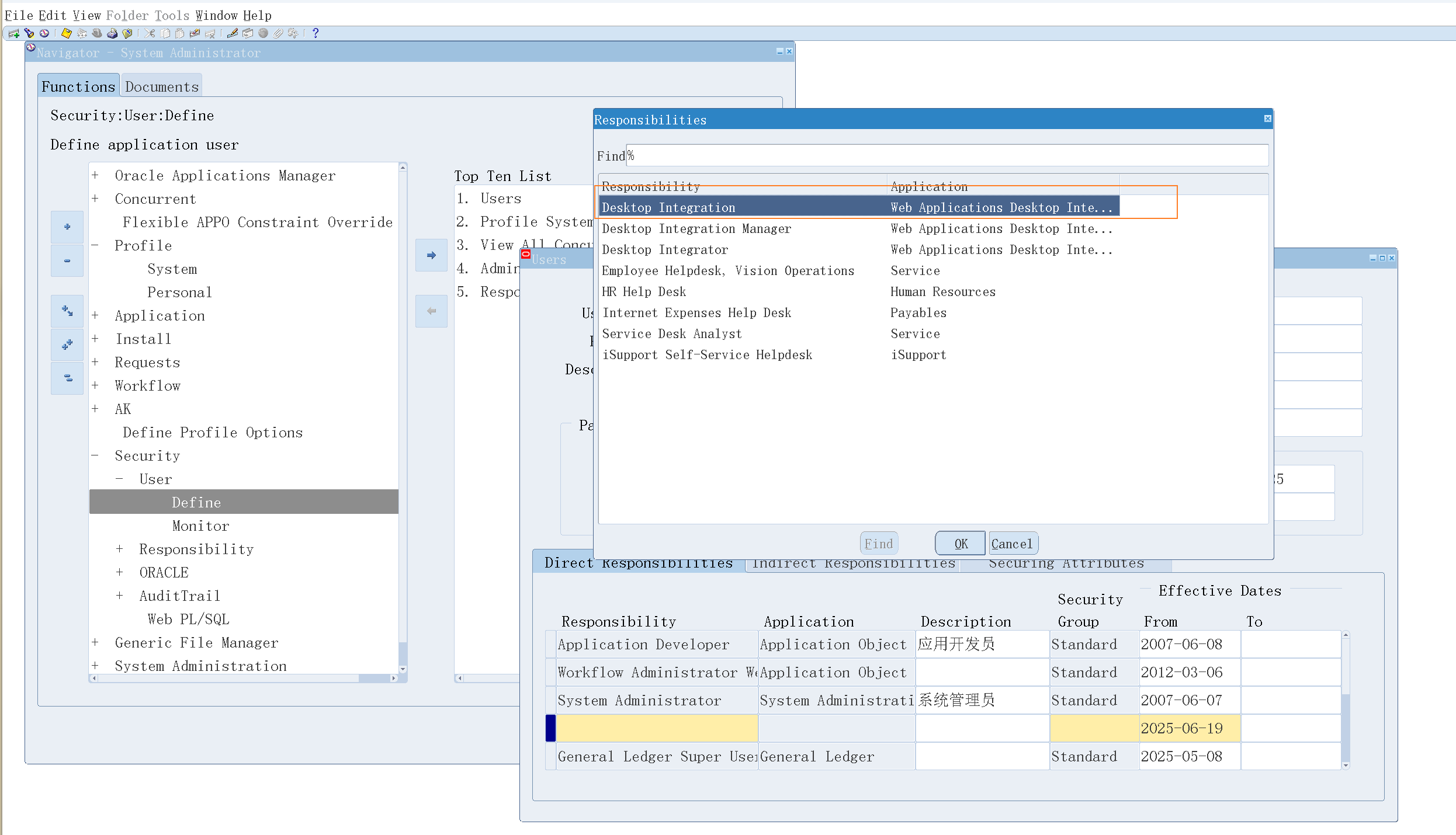 1、当前环境是通过EBS 11.5.10.2 升级至 12.1.3。导致WEBADI无法使用。因为在11.5.10.2中,WEBADI单独挂载一个职责。而在R12之后,WEBADI职责被集成到“Desktop Intergration”职责中。当用户再使用原职责打开WEBADI会出现 404 错误。