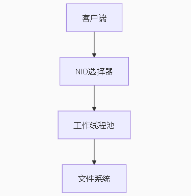 // 文件传输方法private void transferFile(SocketChannel client, Path filePath) throws IOException {try (FileChannel fileChannel = FileChannel.open(filePath, StandardOpenOption.READ)) {long position = 0;long remaining = fileChannel.size();while (remaining > 0) {long transferred = fileChannel.transferTo(position, remaining, client);position += transferred;remaining -= transferred;}}}