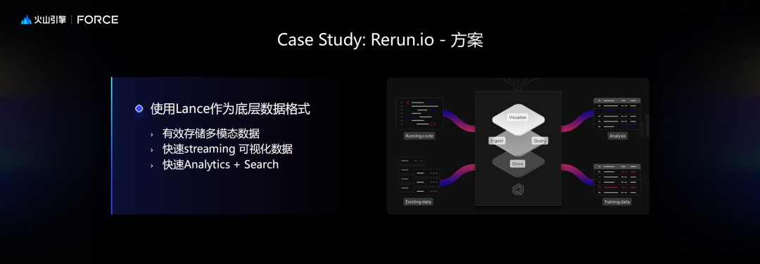 但这样做又带来了新的问题:Parquet格式本身并不擅长处理多模态数据,每个部署节点都需要维护多份数据副本,系统复杂度和管理成本大幅增加。正是这些挑战促使Rerun.io开始与我们合作。最终,他们选择LanceDB作为底层数据格式,完美实现了"一箭双雕"的效果。