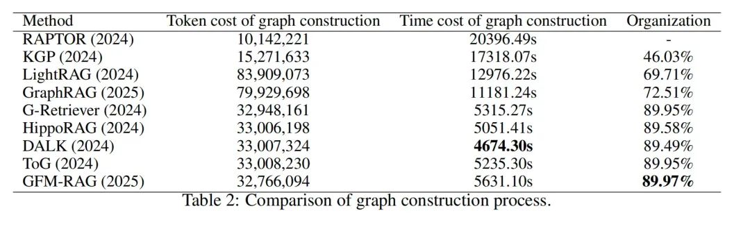 成本 (Cost): 图构建过程中消耗的 token 数量。