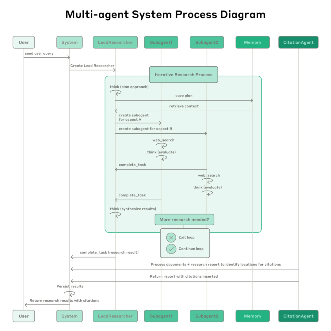 Anthropic的逻辑很直接:单个AI模型就像一个人,再聪明也有极限。但如果让多个AI协同工作,就能突破这个天花板。比如你要研究"2025年AI智能体公司的市场格局"这个复杂问题。如果用单个智能体,它得一步步来:先搜索技术趋势,再看市场数据,然后分析竞争格局...这样下来,半天都搞不定。但多智能体就不一样了。主智能体制定策略,然后同时派出几个"小弟":一个专门搜技术信息,一个专门看市场数据,一个专门分析竞争对手。大家并行工作,效率自然高。