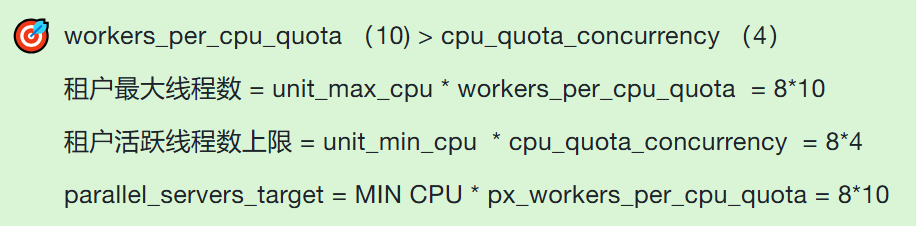 租户活跃线程数上限 = unit_min_cpu × cpu_quota_concurrency